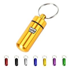 This small pill holder is made of aluminum alloy. It's airtight and watertight, its O-ring seal ensure 100% waterproof. No need to worry about accidental falls. It is ideal for fishing trips, bike riding and camping. With a metal keychain, you can take this little pill holder wherever you go and whatever you do. 2" L x 0.55" Diameter